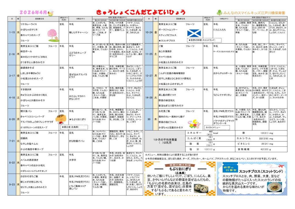 6・20日は郷土食(広島県)、10・24日は世界の料理(スコットランド)、