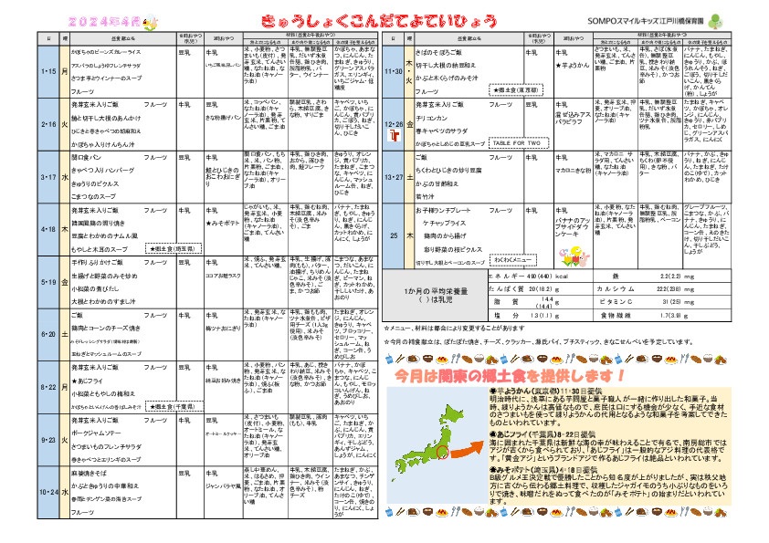 2024年4月の給食献立をお知らせ致します。