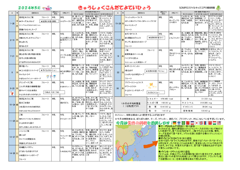 2024年5月の給食献立をお知らせ致します。