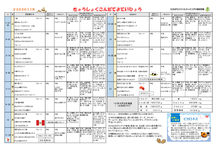 また、21日はカフェテリア給食でテーマは「秋の収穫祭」、27日はわくわくメニューです。