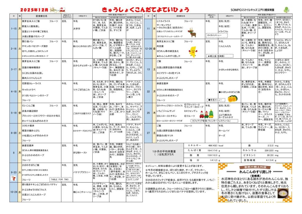 2025年12月の給食献立をお知らせ致します。