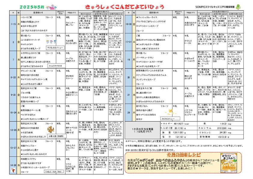 SOMPOスマイルキッズ江戸川橋保育園 管理栄養士の青木です。